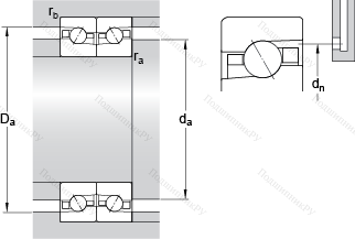 Значения частоты вращения относятся к подшипникам с лёгким преднатягом (суффикс DBA). Для подшипников с сильным преднатягом (суффикс DBB) максимально достижимые частоты вращения составляют около 75 % от приведённых величин.